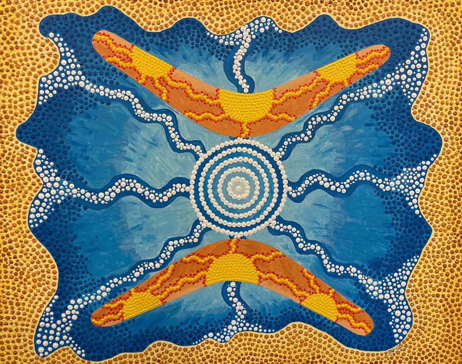 The boomerangs each have 3 suns which represents the trinity (Father, Son and Holy Spirit), it is through the power of the Trinity that we are able to make a difference in the communities we serve. Galatians 5:22-23 “But the Holy Spirit produces this kind of fruit in our lives: love, joy, peace, patience, kindness, goodness, faithfulness, gentleness, and self-control. There is no law against these things!”
